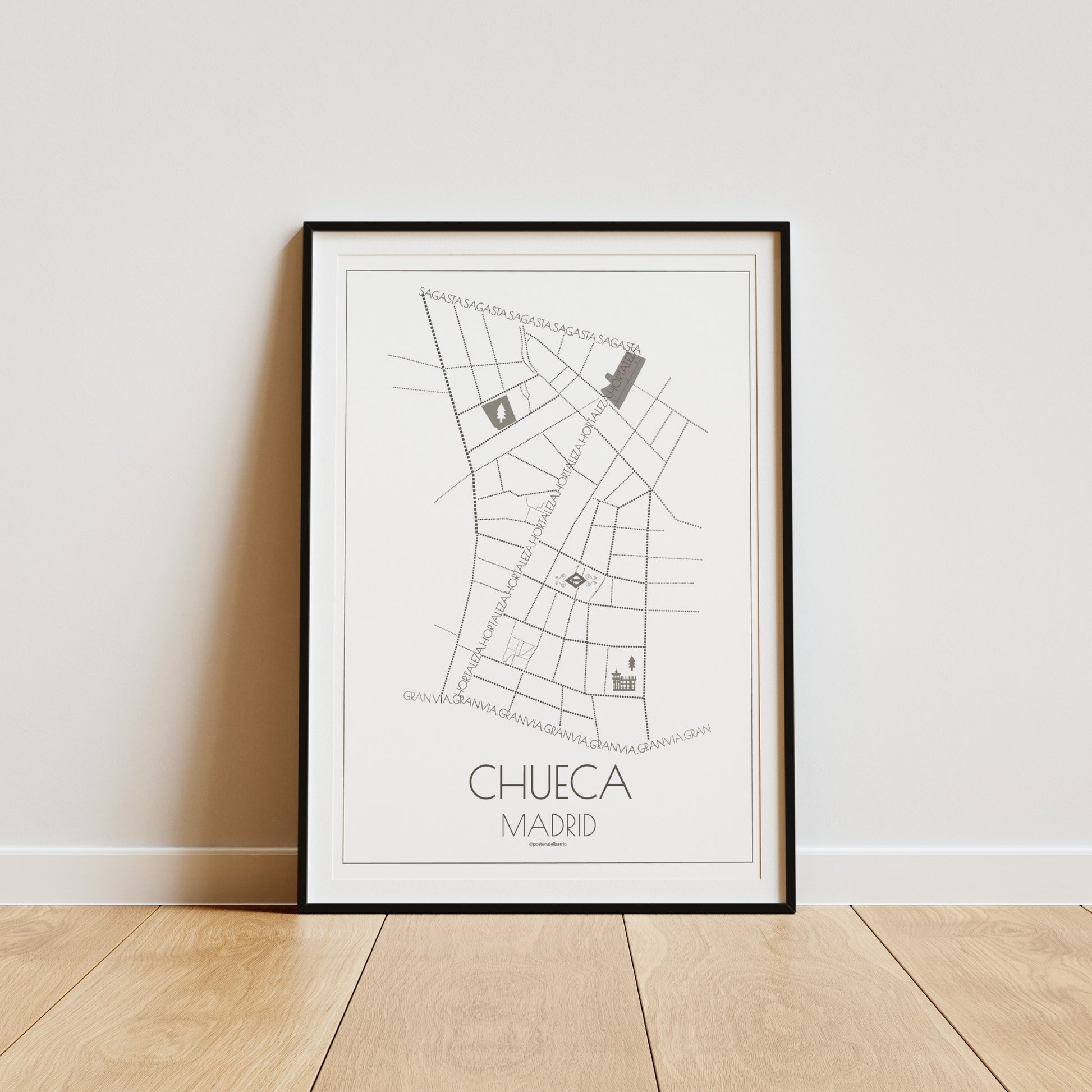 Inclusión, tolerancia y diversidad: este diseño gráfico "hecho a mano" del emblemático barrio de Chueca, un símbolo de la historia y vida LGTBQ+, fue dibujado con amor para que lo exhibas en tu lugar favorito: simplemente elige tamaño, color y orientación de tu póster, y recuerda que el marco no está incluido.
