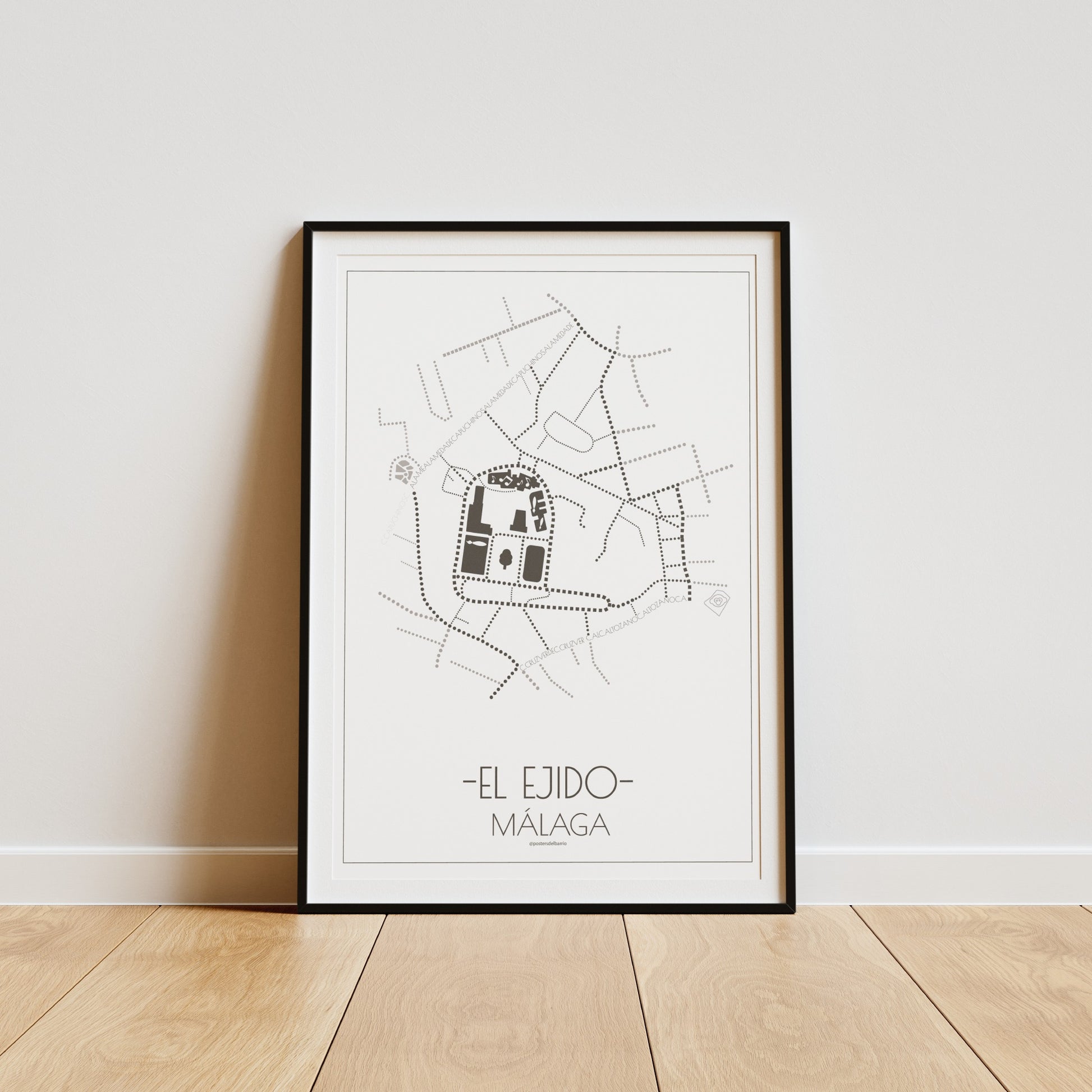 El Conservatorio Superior de Música, Escuela Arte San Telmo, el Teatro Cánovas, la Facultad de Bellas Artes, la Escuela de Arquitectura y el Ateneo de Danza: este diseño gráfico "hecho a mano" del barrio El Ejido en Málaga fue dibujado con amor para que lo exhibas en tu lugar favorito: simplemente elige tamaño, color y orientación, y recuerda que el marco no está incluido.