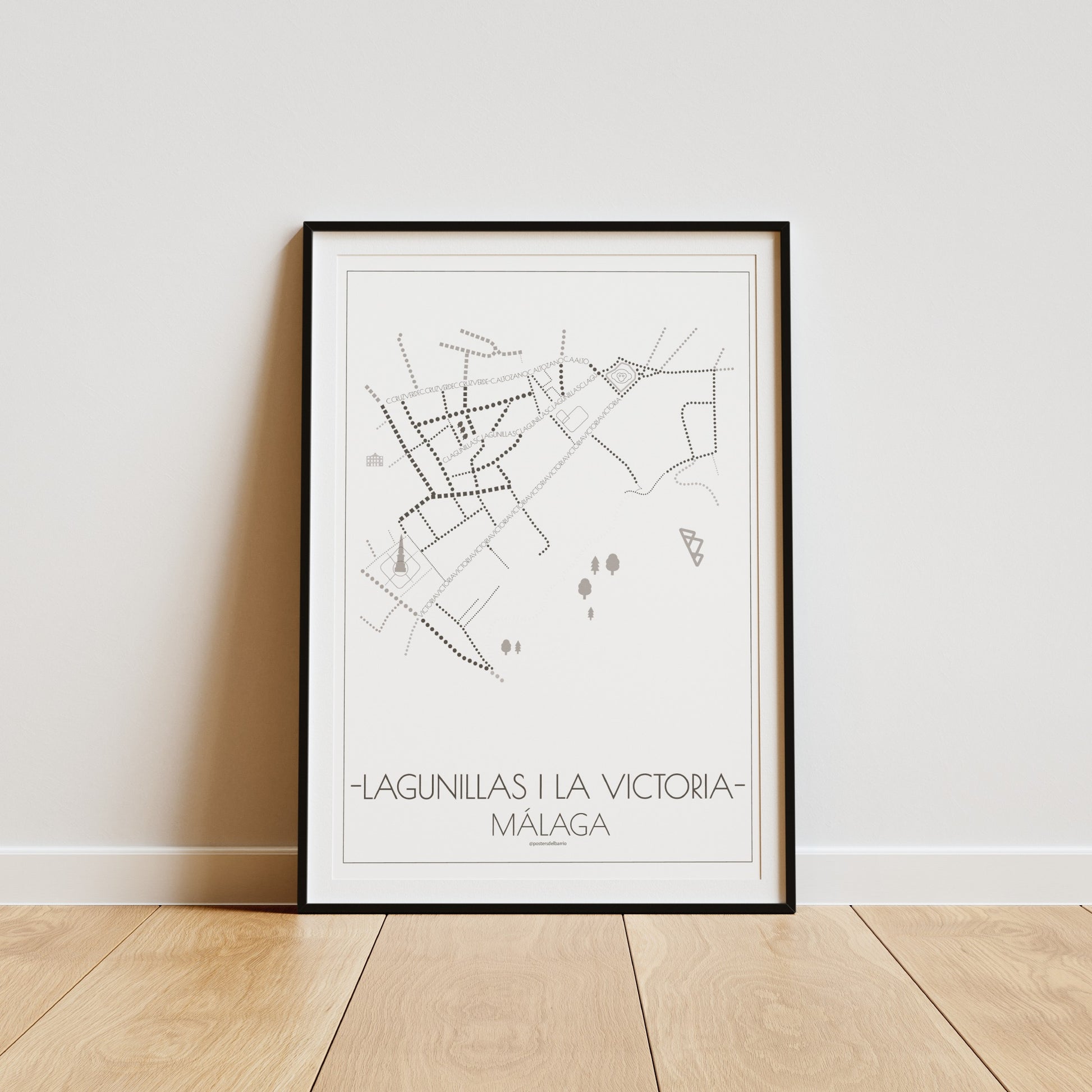 Atravesada por la calle Victoria, con el corazón en sus callejuelas, y al lado de Gibralfaro: este diseño gráfico "hecho a mano" de Lagunillas y Victoria en Málaga fue dibujado con amor para que lo exhibas en tu lugar favorito: simplemente elige tamaño, color y orientación, y recuerda que el marco no está incluido.